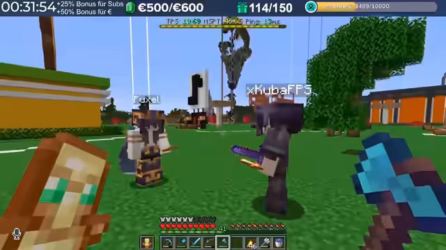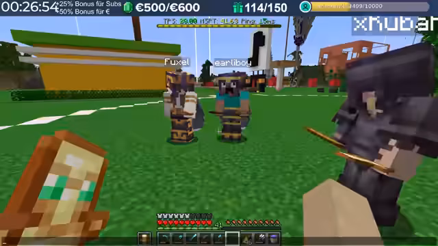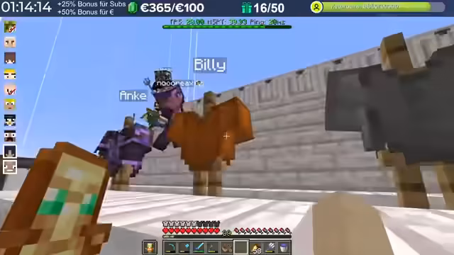 20:14:10Ein Spieler wird mit zwei Optionen konfrontiert: Entweder eine Strafanzeige wegen Diebstahls und Platzierung unerlaubter Gegenstände, die teuer werden könnte, oder die Gegenstände abzubauen und die Sache zu beenden. Der Spieler fordert eine Entschuldigung für die falschen Anschuldigungen und droht damit, ein Haus in die Luft zu sprengen, sollte er seine Sachen nicht innerhalb von zehn Sekunden zurückbekommen. Die Situation eskaliert in einem chaotischen Kampf, bei dem Schwerter verschwinden und Spieler unsichtbar werden. Es wird vermutet, dass ein anderer Spieler, Fuchsel, für die Angriffe verantwortlich ist und immer auf Krawall aus ist. Die Suche nach dem verlorenen Schwert und die Forderung, wieder sichtbar zu sein, führen zu weiteren humorvollen Interaktionen, einschließlich des Vorschlags, Milch zu trinken, um die Unsichtbarkeit aufzuheben. Ein Spieler namens Sebo wird des Diebstahls beschuldigt, und es wird eine Strafanzeige gegen ihn angedroht. Die allgemeine Verwirrung und das Chaos werden als Teil des Spiels dargestellt, wobei die Spieler versuchen, ihre verlorenen Gegenstände zurückzubekommen und die Situation zu klären.