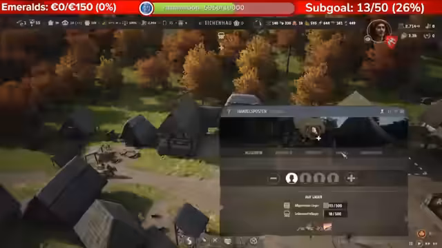 03:09:55Ein feindlicher Anspruch auf Hagensteg erfordert militärische Verteidigung. Söldner werden rekrutiert, um die Armee zu verstärken. Es gibt Verwirrung über den Ort des Schlachtfelds. Die Einheiten werden versammelt und zum Schlachtfeld geschickt. Eine feindliche Einheit wird gesichtet. Es wird festgestellt, dass das Schlachtfeld in der falschen Region liegt. Die Einheiten werden neu ausgerichtet und zum Angriff befohlen. Die Schlacht beginnt, und es muss verteidigt werden. Die Armbrustschützen werden positioniert, und die Tanks stehen bereit. Die Feinde greifen an, werden aber zurückgeschlagen. Es kommt zu Verlusten auf beiden Seiten. Die Bogenschützen werden neu formiert und greifen an. Die Schlacht endet mit einem Sieg für die eigenen Truppen. Der Frieden wird erklärt. Die Einheiten werden zurückgerufen und aufgelöst. Es wird festgestellt, dass einige Verluste erlitten wurden. Eine Holzkirche wird gebaut, um die Zufriedenheit zu erhöhen. Es wird festgestellt, dass es zu wenig Jäger gibt. Eine Leichengrube wird gebaut, um die Toten zu bestatten. Die Zufriedenheit sinkt aufgrund des Winters. Es wird versucht, die Nahrungsmittelversorgung zu verbessern, indem Pferche gebaut werden. Die Dürre hat erneut Probleme verursacht. Es wird gehofft, dass die Hungersnot nicht zu schlimm wird. Es wird strenges Fasten erlassen. Es werden Herrenhäuser in den anderen Regionen gebaut. Es wird festgestellt, dass einige Einheiten noch nicht aufgelöst sind. Der Stream wird am Mittwoch fortgesetzt.
