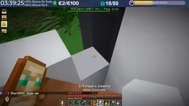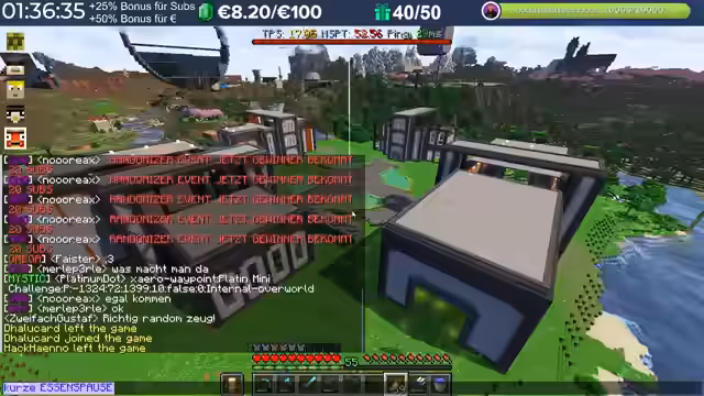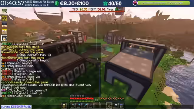 00:08:24Der Stream beginnt nach organisatorischen Verzögerungen. Der Streamer richtet sein Setup ein, berechnet die verbleibende Zeit des Subathons und startet einen Timer für fast fünf Stunden. Er geht auf den wiederkehrenden Prank mit Schleimköpfen ein, der ihn nicht mehr schockt, da er bereits mehrfach vorkam, und erwähnt, dass er die Nacht über weitergebaut hat. Nach einer kurzen Überprüfung des Chat-Verlaufs erklärt er, warum er das Minigame und das Event heute überspringt, da die Servereinstellungen die Item-Angeln verhindern.