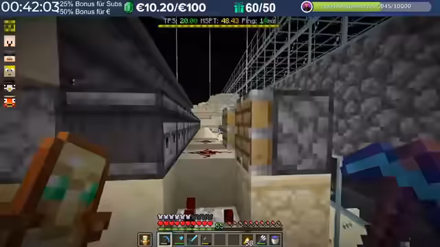00:41:02Der Streamer gibt technische Einblicke in die Server-Software und die Vanilla-Regeln von Minecraft. Er erklärt, dass bestimmte Anzeigen wie die MSPT (Milliseconds Per Tick) nicht im Vanilla-Modus funktionieren, und klärt, dass die Nutzung von Freecam zum Durchschauen von Wänden ein Regelverstoß ist, der zum Bann führen kann. Deswegen muss er sein geplantes Minigame mit der Angel für Items verschieben, da die nötige Servereinstellung nicht umgesetzt werden kann.