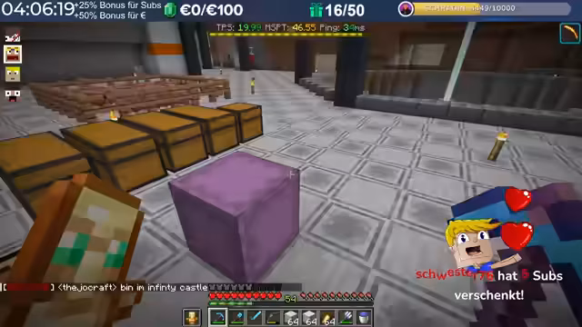 18:06:25Ein großes Charity Event wird gestartet, bei dem Spieler Kupfer abbauen und die Spenden gesammelt werden. Pro abgebautem Kupferblock werden 10 Cent gespendet und alle 500 Blöcke gibt es einen Diamantblock als Belohnung. Die Spieler haben ihre eigenen Kisten zur Sammlung. Der Streamer erklärt die Regeln, stellt eine XP-Farm für Reparaturen bereit und fordert alle auf, fair zu spielen und nicht zu klauen. Das Ziel ist, einen großen Betrag für den guten Zweck zu sammeln.