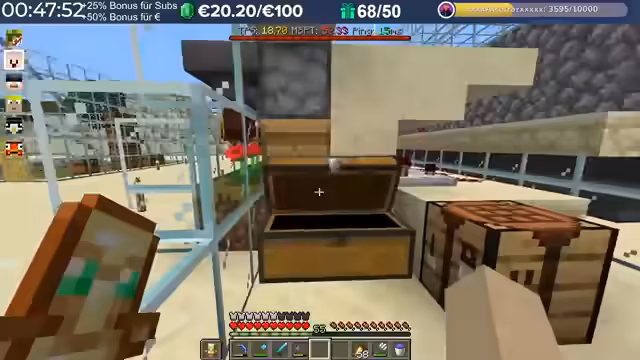 18:45:38Im Fokus des aktuellen Abschnitts steht ein Charity-Event für 'Kinderlachen', bei dem Teilnehmer gemeinsam Kupferblöcke abbauen. Für jeden abgebauten Block wird eine Spende in Höhe von 10 Cent gesammelt. Das Eventziel liegt bei 500 Euro, wobei der gesammelte Betrag von der Gesamtzahl der Blöcke abhängt. Trimax organisiert das Event und nutzt die Teilnehmer als Arbeitskräfte, während das generelle Ziel ein gemeinsamer Erfolg für den guten Zweck ist. Die gesammelten Materialien werden in speziellen Kisten gelagert.