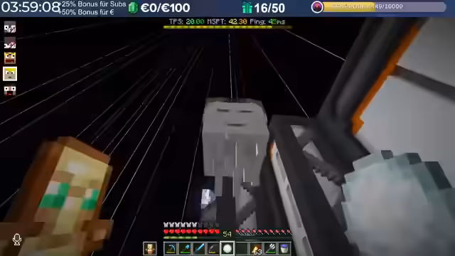 17:18:58Ein neuer, ehemaliger Teilnehmer wird im Team begrüßt, dessen Identität vorerst geheim gehalten wird. Parallel dazu wird eine technische Einschränkung bekannt gegeben: Aufgrund eines Urheberrechtsanspruchs auf den Minecraft-Enderdrachen-Sound durch Dritte, werden alle Boss-Sounds, insbesondere der des Enderdrachen, vorerst nicht mehr im Stream verwendet, um eine Content-ID-Claimung zu vermeiden.