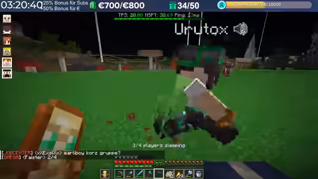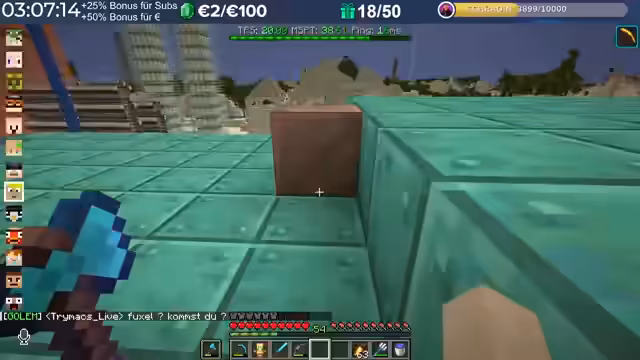 04:02:07Der Streamer wird spontan in eine wilde Herausforderung verwickelt, bei der er für eine hohe Summe Diamanten die komplette Base eines anderen Spielers sprengen soll. Dies führt zu einem hitzigen, humorvollen Dialog über die Ausmaße der Zerstörung und die Bezahlung. Währenddessen gibt es parallel Diskussionen über die Farm-Methoden von Ressourcen wie TNT und Diamanten. Die Stimmung ist gelassen und die Teilnehmer interagieren teilweise neckisch. Es werden auch Pläne besprochen, wie man Ausrüstung stehlen und farmen kann, was eine weitere Interaktionsebene im Spiel zeigt.