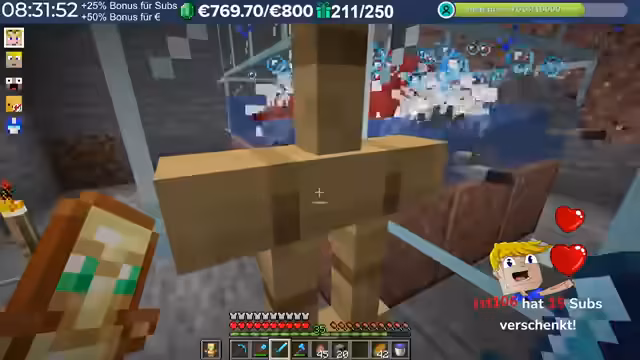 03:54:52Die Streamer konzentrieren sich auf die Entwicklung einer effizienten XP-Farm mit Silberfischen, die durch einen Splash Potion of Infestation ausgelöst werden. Besonders interessant ist der Einsatz von Sweeping Edge, um die Silberfische effizient zu töten und gleichzeitig die Ausrüstung zu reparieren. Die Farm bietet einen schnellen XP-Gewinn und ermöglicht gleichzeitig die Reparatur von Werkzeugen. Eine Herausforderung bleibt der Serverlag, der das Farmen erschwert. Die Streamer überlegen alternative Server oder Lösungen, um dieses Problem zu beheben, während sie auch über die Möglichkeiten der Farmerweiterung nachdenken, wie etwa dem Hinzufügen weiterer Amadillos oder der Installation einer parallel verlaufenden zweiten Farm.