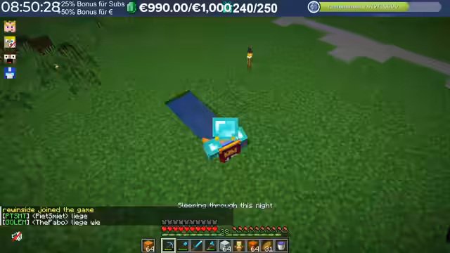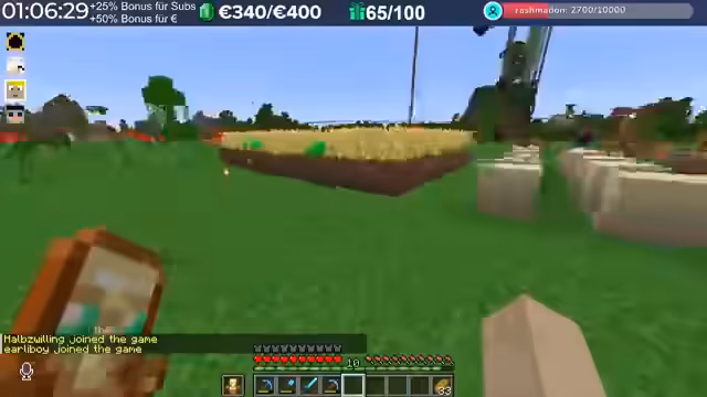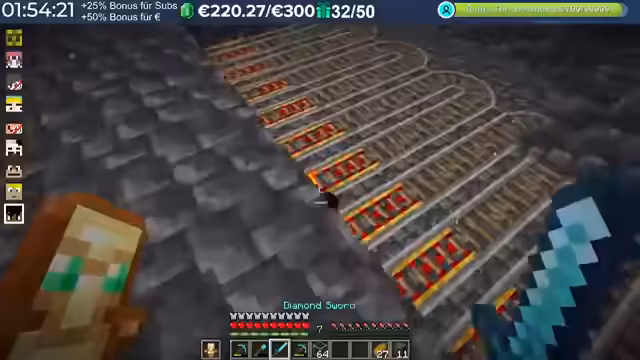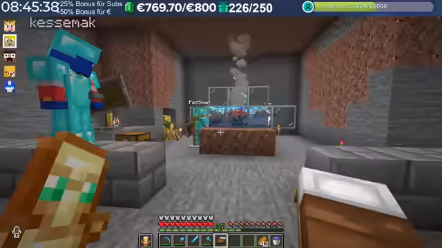 11:36:14Es kommt zu einer humorvollen Diskussion über das Verhalten der Streamer im Vergleich zu anderen Spielern auf dem Server. Ein Streamer wird als 'Liebster überhaupt' bezeichnet, der jedem hilft und farmt, im Gegensatz zu anderen, die 'schlimm' geworden sind. Es wird ein Vorfall erwähnt, bei dem ein anderer Spieler versehentlich einen Stack TNT auf einer Villager-Farm platziert hat, was als 'Unfähigkeit' und nicht als böse Absicht abgetan wird. Die Konkurrenz auf dem Server wird als 'richtig krass' beschrieben, da einige Spieler absichtlich Unsinn machen, was die Situation unberechenbarer macht. Es wird auch die Schwierigkeit erwähnt, mit bestimmten Spielern in Kontakt zu treten, da diese ständig von anderen Spielern 'befummelt' werden und somit schwer erreichbar sind, insbesondere im Hinblick auf die Vergabe von Sub-Gifts.
