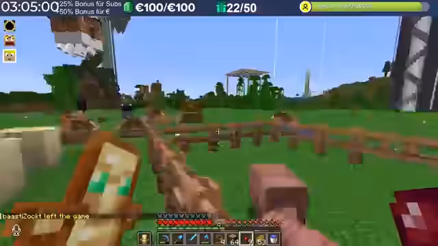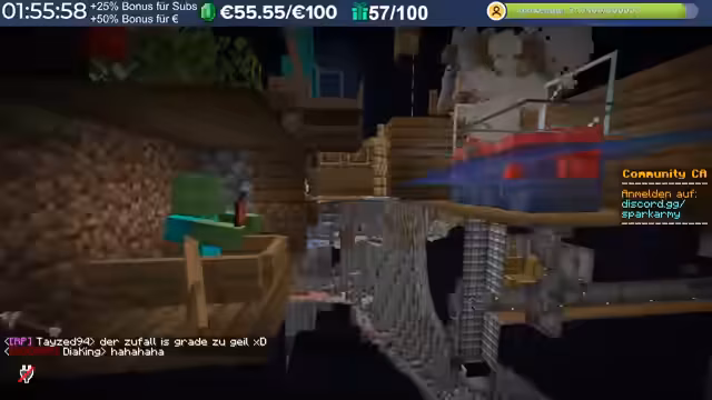 03:44:22Ein Spieler hatte seinen ersten 'Beef' auf Twitter, was als Zeichen der Akzeptanz in der Community gewertet wird. Die Situation wurde schnell geklärt und entschuldigt. Die kaputten Tools aufgrund der Kaktusfarm werden beklagt, und es wird überlegt, 'Happy Ghast' in einem Shop zu verkaufen. Die mühsame Arbeit des Sandstein-Abbaus wird als 'Dulli-Arbeit' bezeichnet, aber die Zufriedenheit nach Fertigstellung wird betont. Die Server-Lags beeinträchtigen die Nutzung der XP-Farm, da kein Schaden gemacht wird. Eine Alternative oder ein Fallback-Server wird vorgeschlagen, um die Probleme zu beheben. Die Diskussion über den 'Fußboden' in einem ausgehobenen Loch führt zu humorvollen Wortgefechten. Die Spieler freuen sich auf Fußball-Highlights und diskutieren die Leistung des HSV. Die Suche nach einem bestimmten Raum in den Trial Chambers, in dem Zombies mit einem Getränk ausgelöst werden können, wird thematisiert, und ein Spieler erhält den 'Superdrunk'-Trank. Die Möglichkeit, Monster gemeinsam zu bekämpfen, um doppelten Loot zu erhalten, wird in Betracht gezogen.
