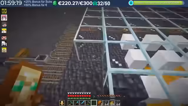 16:59:14Der Streamer beginnt mit dem Bau eines Amadillo-Geheges, um die Tiere zu vermehren. Er plant, diese später für die XP-Farm zu verwenden. Er erwähnt auch den Bau einer unterirdischen Bergbase mit speziellen Sicherheitsmaßnahmen. Der Bau der XP-Farm ist einfach, aber er will ein Tutorial als separates Video erstellen, da er noch nie eine solche Farm gebaut hat.