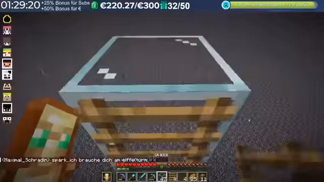 13:01:21Der Streamer konzentriert sich auf das Craften von Kisten und die Organisation von Ressourcen für das Bauprojekt. Es wird über die Verteilung der Aufgaben gesprochen und die Notwendigkeit, bestimmte Materialien wie Doppelkisten zu sammeln, betont. Die Teams arbeiten daran, die Basis weiterzuentwickeln und die benötigten Materialien effizient zu verteilen. Gleichzeitig werden die technischen Aspekte des Bauvorhabens, wie die Platzierung und Ausrichtung der Bauelemente, diskutiert und Optimierungen vorgenommen.