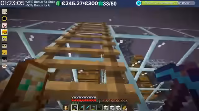 02:08:33Der Streamer freut sich über den Baufortschritt, insbesondere die Fertigstellung der XP-Farm. Er plant, weitere Gebäudeteile hochzuziehen und verwendet dafür Baumaterial aus seinem Inventar. Ziel ist es, die Gebäude bis zum Endaufbau fertigzustellen, was als „absolut Giga“ bezeichnet wird. Während des Baus reflektiert er über die absurden Rekorde, die in früheren Streams, insbesondere Craft Attack 10 und Edwin's Grindstream, aufgestellt wurden. Der alte Sub-Rekord von 1564 wurde mit 1881 Subs in einem Stream geknackt, was als „crazy“ und „wild“ beschrieben wird. Er bedankt sich bei allen Teilnehmern, die zu diesen Rekorden beigetragen haben, und vergleicht die Dynamik mit einer „Piranha-Frenzy“, bei der ein kleiner Anstoß eine große Reaktion auslöst. Er erwähnt auch, dass die Rekorde mittlerweile so hoch sind, dass sie kaum noch regelmäßig zu knacken sind. Die allgemeine Stimmung im Chat wird als positiv beschrieben, mit wenigen Problemen oder Moderationseingriffen.