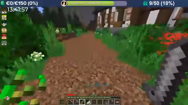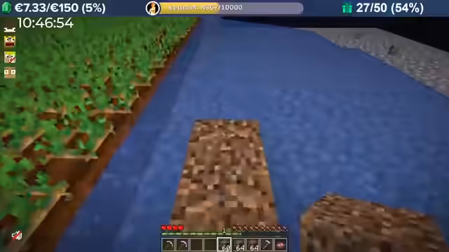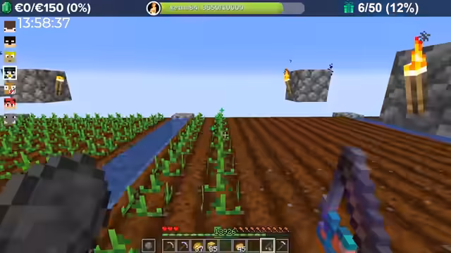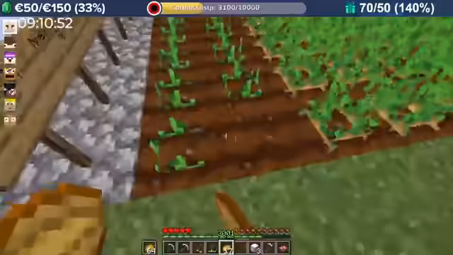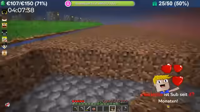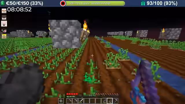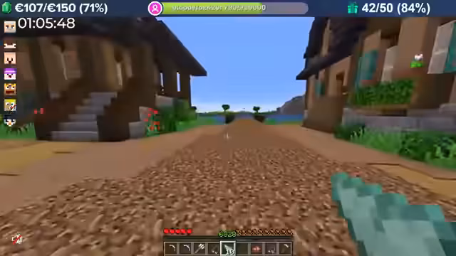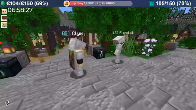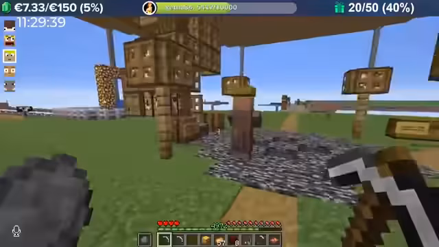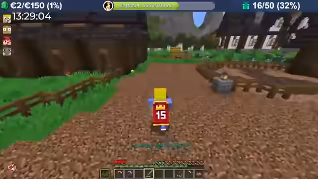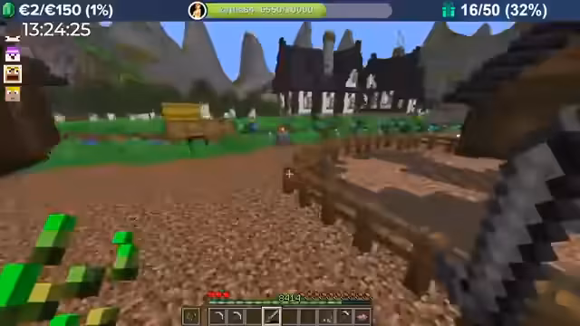 04:00:08Durch massive Booster-Effekte (8-fache Erfahrung) erntet der Streamer Kartoffeln in rasantem Tempo, was zu Level-Sprüngen im Bereich von 10.000 führt. Das Team fehlt nur noch 300 Eisenbarren für das Golem Pet. Anschließend wird die Hauptstadt erkundet, die wie eine MMORPG-Welt aufgebaut ist und Points of Interest wie eine Kirche, einen Potions Shop und versteckte NPCs wie einen königlichen Hofmagier enthält.