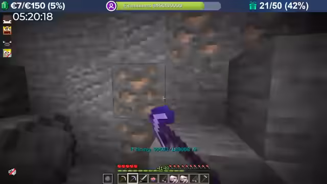 04:32:35Ein Effektiver Eisen-Grind und Bergbau-Strategie wurde im Stream präsentiert. Der Streamer nutzt eine besondere Mine, die wegen des niedrigen Mining-Levels einen extremen Boost für den Abbau von Eisen bietet. Pro abgebautem Eisenblöck werden 16 Level erhalten, was weitaus profitabler ist als das Ernten von Kartoffeln. Die Spitzhacke kann durch das Sammeln von abgebauten Blöcken upgradet werden, was den Abbau weiter beschleunigt. Es wird empfohlen, so lange Eisen wie möglich zu farmen, um den Boost optimal auszunutzen und die Spitzhacke schnell aufzurüsten. Das Mining-Level steigt dabei kontinuierlich an und der Boost endet, wenn 80% des Top-Mining-Level erreicht sind.