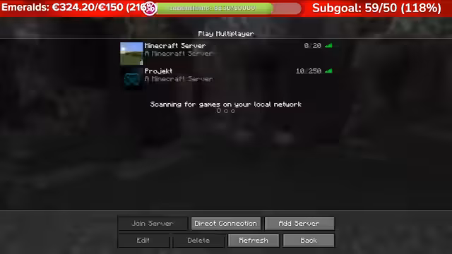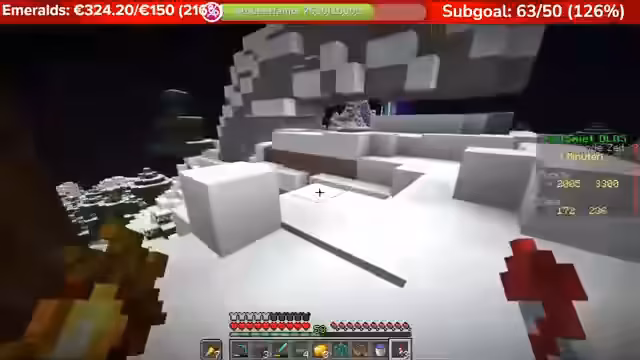 02:50:50Nachfolgendes Ziel ist es, ein bewegtes Pferd in der Spielwelt mit Raketen zu treffen. Die Streamer bauen hierfür eine Plattform und einen Zaun. Dabei kommt es zu Diskussionen über die richtige Technik: nicht springen, sondern nur fallen und bei vollem Schwung einen einzigen Schlag landen. Viele Versuche scheitern, meist durch unsichere Positionierung oder zu früh ausgelöste Schläge. Es gibt technische Server-Lags und Pannen, aber am Ende wird die Aufgabe mit 25 Punkten abgeschlossen.