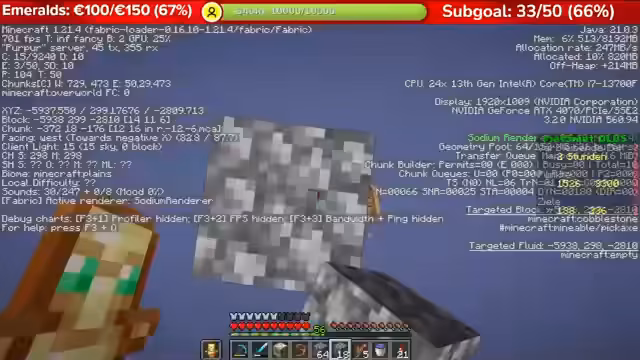 00:00:00Der Stream beginnt mit der Rückkehr in die Chamber, um eine vergessene Aufgabe zu erledigen. Der Fokus liegt auf dem Sammeln spezifischer Materialien: gewachsten Kupferblöcke und Spinnennetze. Es kommt zu technischen Schwierigkeiten beim Craften, und die Streamer kämpfen mit der Übersicht im Inventar, während sie versuchen, die benötigten Ressourcen unter Zeitdruck zu sammeln und Mobs zu bekämpfen, die während der Suche spawnen.