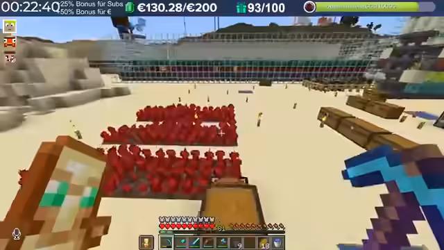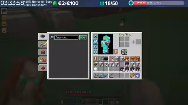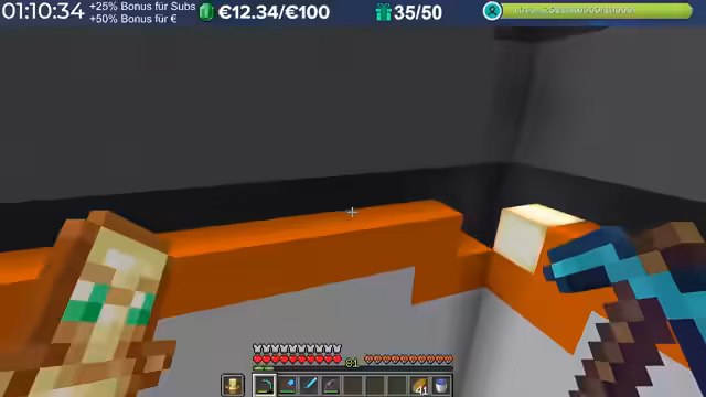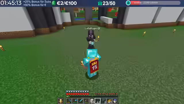 12:19:42Parallel zum Bau der eigenen Farm gibt es Aktivitäten auf dem Server, wie einen beobachteten 'Boss' und einen Stream 'Drache darf durch'. Es werden Spieler erwähnt, die bei der Farm aktiv sind oder Unterstützung leisten. Der Streamer spricht seine Ziele für den Abend an. Er möchte erreichen, dass der Stream 8 Stunden lang läuft, um das Subathon-Tag-13-Ziel zu erreichen. Es wird eine knappe Zeit angestrebt, bei der jeder zusätzliche Minute zählt.