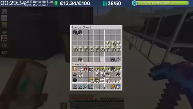 12:02:34Die zuvor hergestellten Tränke kommen nun in einer großen Zombie-Farm zum Einsatz. Der Streamer und sein Team starten einen Testlauf, bei dem sie versuchen, Zombies mit den Tränken zu infizieren, um diese anschließend in Silberfische zu verwandeln. Das Ziel ist, die Silberfische zu töten, um Schleime zu farmen. Der Streamer analysiert den Ertrag und stellt fest, dass auch mit nur wenigen Ausgangstieren eine beachtliche Menge an Schleimblöcken produziert wird.