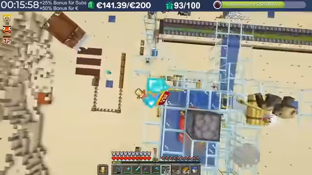 07:52:36Der Streamer berichtet von den laufenden Bauarbeiten, insbesondere dem Versuch, eine Brücke zu den Kupfergolems zu bauen. Eine Verwirrung um ein angeblich verlorenes Bauwerk wird schließlich als Griefing-Vorfall geklärt: Ein anderer Spieler hat versucht, die Basis anzugreifen, indem er mit Silberfischen decorierte, um sie unappetitlich wirken zu lassen. Des Weiteren wird das Thema Elytren für das Endgame angesprochen und die teure Anschaffung thematisiert. Die Möglichkeit, Trial Chambers zu claimen, wird als möglicher Taktik zur Sabotage diskutiert.