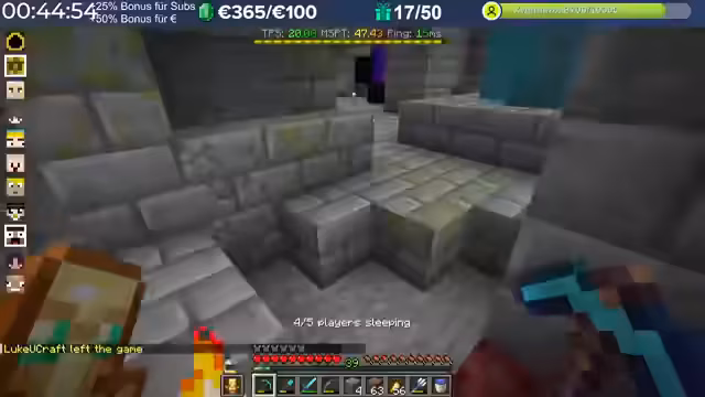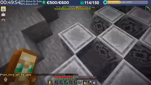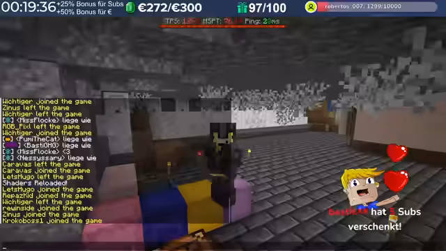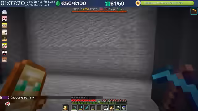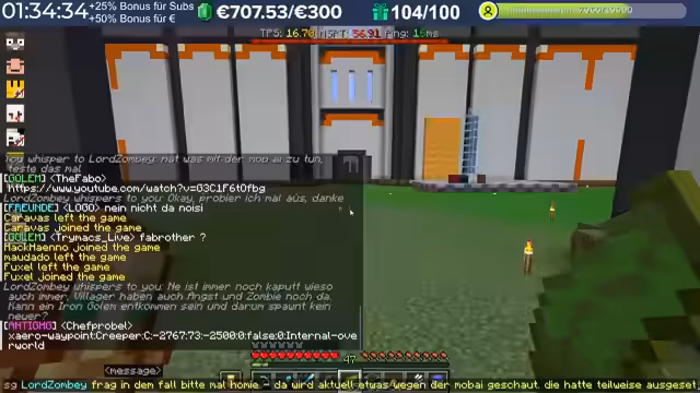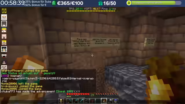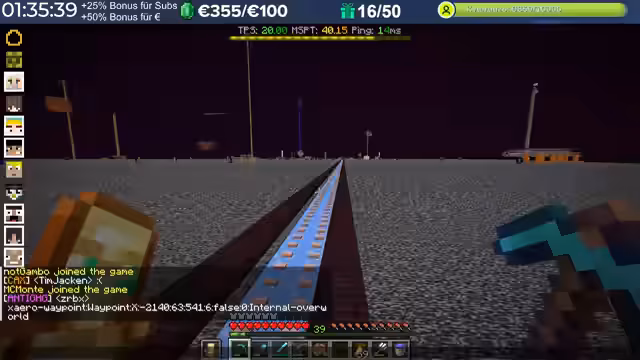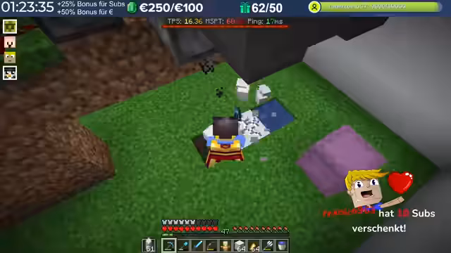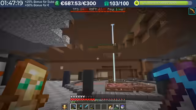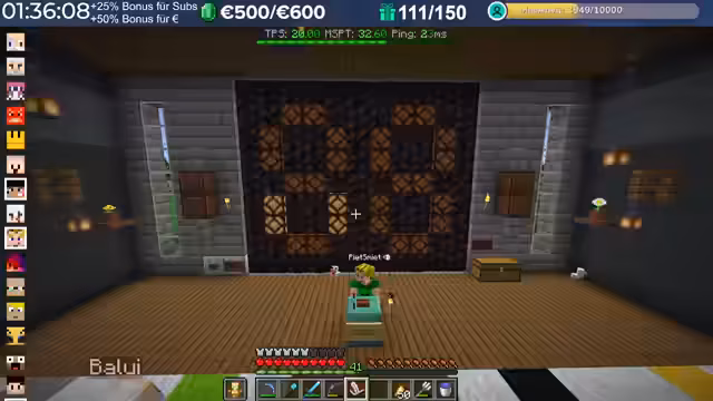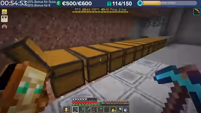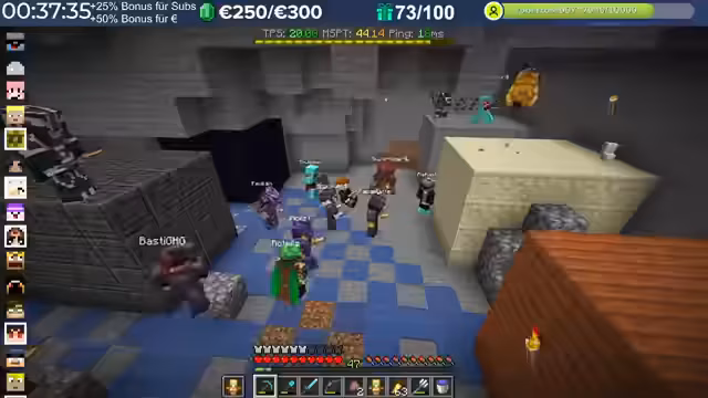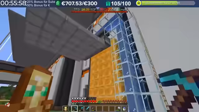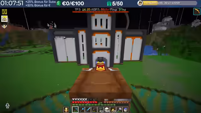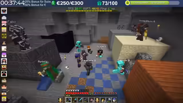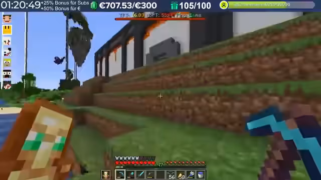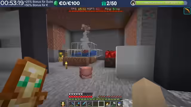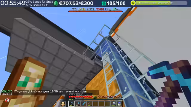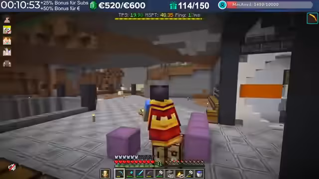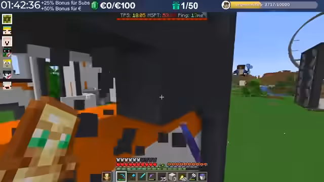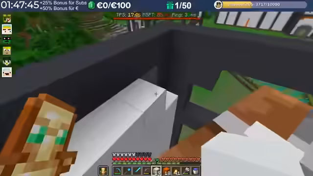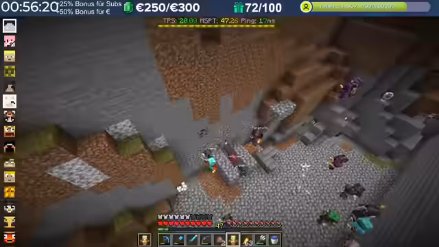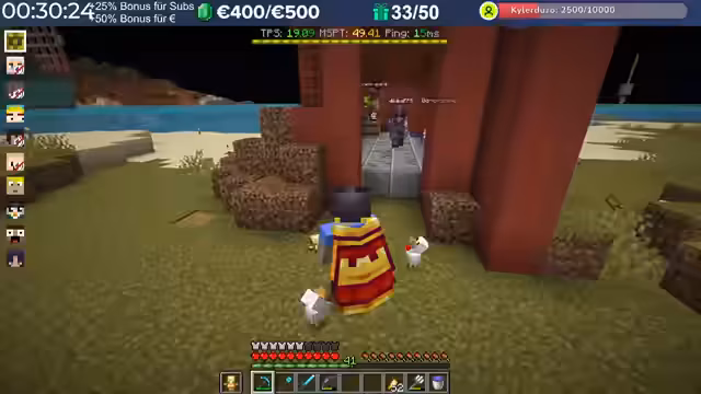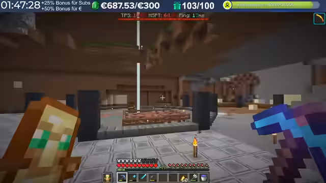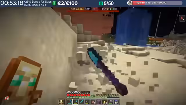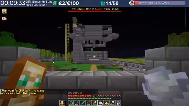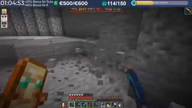 14:29:23Nach dem Stream hat der Streamer weitergebaut und Neuerungen eingeführt, die auch den Zuschauern noch nicht bekannt sind, darunter die Einblendung einer TPS-Bar. Es wurde eine mögliche Ursache für das Verschwinden von Armadillos identifiziert: ein Mob-AI-Problem, das dazu führte, dass sie sich nicht richtig verhielten und verbrannten. Auch Villager zeigten ähnliche Probleme beim Arbeiten und Restocken von Trades. Es wird gehofft, dass ein kürzliches Update diese Probleme behoben hat. Durch die wieder aktivierten Mob-AIs ist die TPS-Leistung des Servers erneut am Limit, da die Spieler nach zwei Wochen Bauzeit immer mehr Strukturen errichten, ohne auf Ressourcenschonung zu achten. Der Streamer hat bereits mit dem Bau weiterer Lager begonnen und plant Tunnel, wobei er den Eingang leicht verlegt hat, um einer klaren Vorgabe zu folgen. Er plant, den Bereich Stück für Stück weiter trockenzulegen, um ausreichend Platz zu schaffen, und muss dabei auch auf das Ausleuchten achten, um das Spawnen von Mobs zu verhindern.
