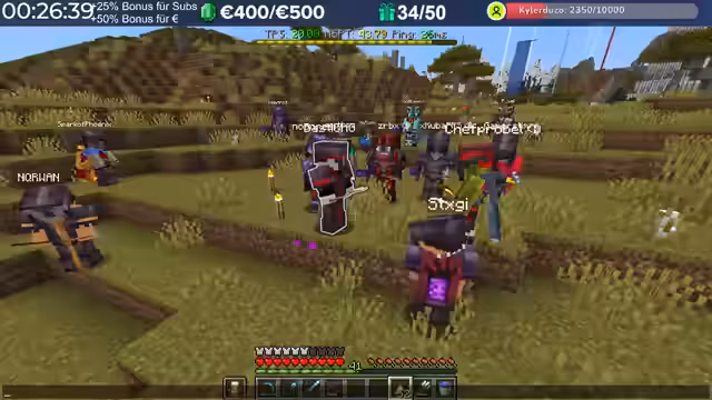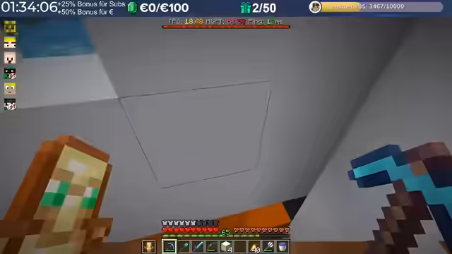 02:11:05Die Rätselsuche spitzt sich zu, als bekannt wird, dass „Felika“ einen QR-Code (3 von 4) im Endschiff gefunden hat. Die Teilnehmer vermuten, dass die fehlenden QR-Codes und die daraus resultierenden Koordinaten auf der Netherdecke zu finden sind. Ein YouTube-Video-Link, der die Koordinaten des Dracheneis enthält, wird entdeckt und im Discord geteilt. Die Koordinaten „9 minus 1,17“ werden entschlüsselt, und die Spieler eilen zu diesem Ort. Trotz der gemeinsamen Anstrengungen gelingt es „Klim“, das Drachenei zu finden, wird jedoch von „Norex“ getötet, der das Ei an sich nimmt. Dies führt zu Frustration und Diskussionen über die Fairness des Events, da das Ei nun in den Händen der gegnerischen Gruppe ist. Die Teilnehmer überlegen, wie sie das Ei zurückerobern können, sei es durch einen „Sneaky Angriff“ auf die Basis von „Basti“ oder durch Protestaktionen mit Eiern.