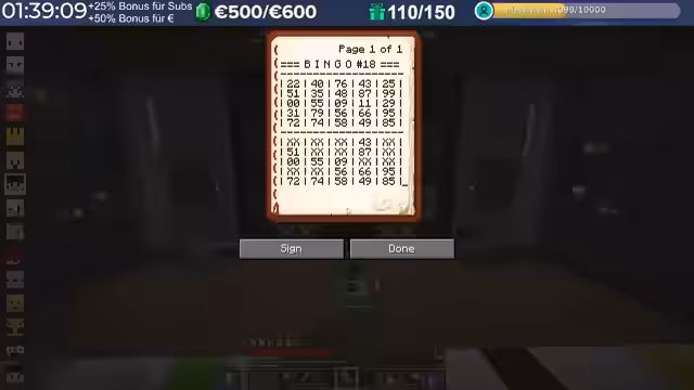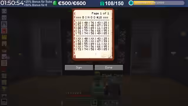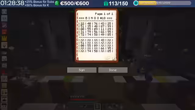 03:01:25Die Spieler versammeln sich zu einer Partie Bingo bei den 'Pietz'. Es wird erklärt, dass man für 10 Subs ein Bingo-Feld erhält. Die Spieler werden angewiesen, die Bücher niemals zu signieren, da sie sonst nicht mehr bearbeitet werden können. Es kommt zu Verwirrung und Chaos bei der Verteilung der Bingo-Scheine und der Erklärung der Regeln. Einige Spieler beschweren sich über die Langsamkeit des Spiels und die fehlenden Zahlen. Es wird ein Lied über Rentner gesungen, und die erste Zahl wird gezogen. Die Spieler haben Schwierigkeiten, die Zahlen auf ihren Scheinen zu finden und beschweren sich über das 'gezinkte' Spiel. Es wird diskutiert, ob diagonale Reihen zählen und ob man das Spiel langsamer spielen kann.