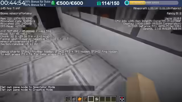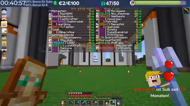 14:36:12Der Livestream beginnt mit der Begrüßung der Zuschauer und dem Start auf dem Server. Es kommt jedoch zu einem Problem, da nach einem Neustart des PCs und damit auch von Minecraft die Meldung 'Invalid Session' erscheint, was einen erneuten Neustart des Spiels erforderlich macht. Der Streamer hat in der Zwischenzeit an seinem Gebäude weitergebaut und neue Elemente wie DX-Blöcke gesetzt. Er plant, weiterhin Beton zu mischen, um die Bauarbeiten fortzusetzen. Es wird auch eine Diskussion über die Kommunikationsmöglichkeiten mit dem Streamer geführt, wobei Discord und Twitch-PNs als bevorzugte Kanäle genannt werden, insbesondere für streamrelevante Themen oder technische Fragen. Persönliche Anliegen sollten jedoch nicht über diese Kanäle kommuniziert werden. Anfragen bezüglich der Teilnahme an Craft Attack werden abgelehnt, da dies nicht über diesen Weg möglich ist. Der Streamer erwähnt zudem, dass die Welt von Craft Attack 12 zum Download bereitsteht.