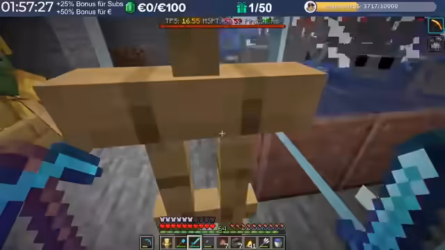 19:10:48Das absolute Highlight des Bieterverfahrens, ein geheimer Admin-Container von Early Boy, wird mit 10 Diamanten eröffnet. Papaplatte bietet 20 Diamanten, Chef Probe einen Stack, und Papaplatte 80. Fabo bietet 250 Diamanten, was zu großer Aufregung führt. Die Auktion wird jedoch für unzulässig erklärt, da jemand in den Container geschaut hat. Der Streamer ist unsicher, ob er mit einem fairen Ergebnis rechnen kann und zieht sein Gebot zurück. Es wird festgestellt, dass es aufgrund der Manipulation keine weiteren Gewinne gibt. Trotz der Kontroversen wird das Event als unterhaltsam und erfolgreich bewertet, da viele Diamanten gesammelt wurden. Der Streamer und sein Team kehren zur Base zurück, um mit dem Bau eines Minigames fortzufahren und Stein zu farmen. Es wird auch über die Arbeitszeiten von Streamern und die Herausforderungen gesprochen, die Stimme während langer Streams zu schonen. Eine Farm, die Villager-Babys produziert, wird erwähnt, und es wird über die Effizienz von Redstone-Schaltungen und die Fähigkeiten von Spielern wie Fuchsel diskutiert, die innovative Farmen bauen können. Der Streamer plant, Honigblöcke für das Minigame zu sammeln. Es wird auch erwähnt, dass ein Spieler namens Hugo wieder entbannt wurde, was auf eine schnelle Reaktionszeit von Mojang hindeutet. Das Lager wird organisiert, und es wird festgelegt, welche Kisten für das Farming-Lager und welche für persönliche Gegenstände sind.