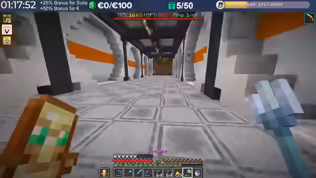 17:12:57Es wird eine Hotfix-Lösung für einen Kupfergolem-Sorter vorgestellt, bei dem Treppen durch Wegblöcke ersetzt und Golems mit Kolben näher an die Kisten geschoben werden, um eine zuverlässigere Funktion zu gewährleisten. Diese Verbesserung wurde bereits in den Kommentaren eines Tutorials ergänzt. Parallel dazu wird über den Bedarf an großen Mengen Stein für Fußbodenblöcke gesprochen, um eine Lobby in einer Fabrikhalle zu bauen. Das Ziel ist es, ein Minispiel in dieser Lobby zu integrieren und die Bauarbeiten noch am selben Tag abzuschließen. Die Beschaffung des Steins soll durch das Ausheben von Räumen in der Basis kombiniert werden, um effizienter vorzugehen. Es wird auch über die Unterschiede zwischen der Bedrock- und Java-Version von Minecraft diskutiert, insbesondere im Hinblick auf die Spielgeschwindigkeit.
