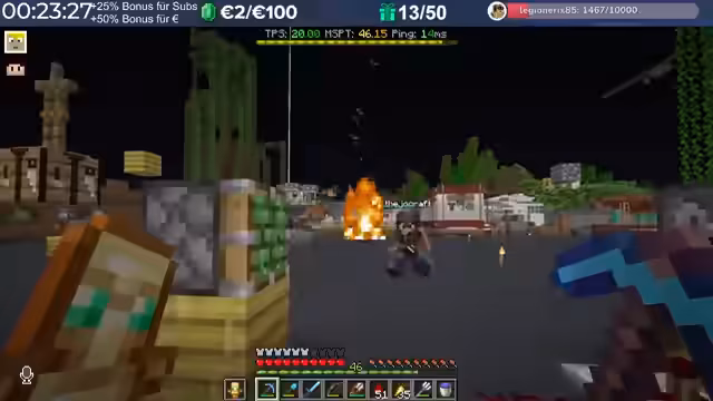 22:45:17Eine ausführliche Diskussion entbrennt über die Effizienz von Spitzhacken, insbesondere den Vergleich zwischen Diamant- und Netherit-Spitzhacken mit Effizienz V. Es wird erörtert, ob sich ein Upgrade auf Netherit lohnt, wobei die Meinungen über den tatsächlichen Geschwindigkeitsunterschied auseinandergehen. Während das Wiki einen geringen Unterschied von 34 zu 35 in der Mining Efficiency angibt, wird von Zuschauern ein deutlich größerer Unterschied von 25% behauptet. Die allgemeine Server-Performance wird ebenfalls thematisiert, wobei die Zuschauer die vielen Boote und Mobs in Hugos Basis als Ursache für Lags identifizieren. Es wird vorgeschlagen, zukünftig eine zentrale Villager Trading Hall einzurichten, um die Serverlast zu reduzieren und die Performance zu verbessern, da viele Farmen unkontrolliert laufen und tausende von Mobs existieren.