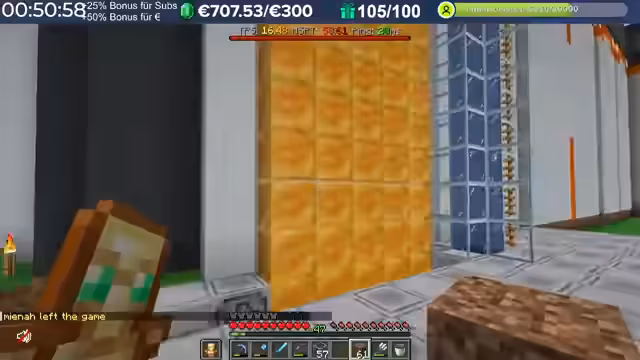 14:05:19Die Arbeiten am Item-Minigame, einer Item-Rutsche zum Angeln, werden fortgesetzt. Es wird überlegt, wie man verschiedene Blocktypen wie Erde, Stein und Netherrack nutzen kann, um unterschiedliche Punktwerte zu vergeben. Die Herausforderung besteht darin, dass sich die Items im Spiel stapeln können, was das Angelerlebnis beeinflusst. Es wird diskutiert, ob dies als „Bug zum Feature“ umdefiniert werden kann, sodass das Angeln von gestapelten Items doppelte Punkte bringt. Zudem werden weitere wertvolle Items wie Netherstar, Netherite-Ingot und Diamant-Pferderüstung für höhere Punktwerte in Betracht gezogen. Die technische Umsetzung der Rutsche erweist sich weiterhin als schwierig, da die Items nicht gleichmäßig verteilt werden und teilweise hängen bleiben. Es müssen Anpassungen am Wasserstrom und den Abständen vorgenommen werden, um einen reibungslosen Fluss zu gewährleisten. Die Idee ist, dass die Spieler zufällig verschiedene Items angeln können, die unterschiedliche Punktwerte haben, was das Minigame abwechslungsreich und spannend macht, sobald die technischen Hürden überwunden sind.