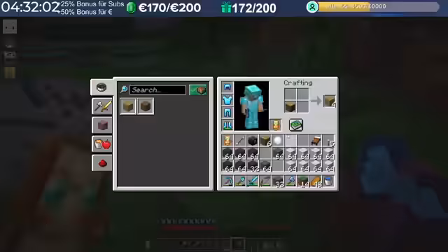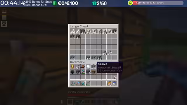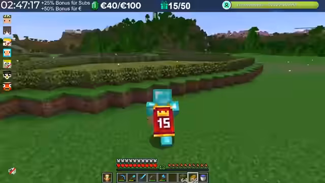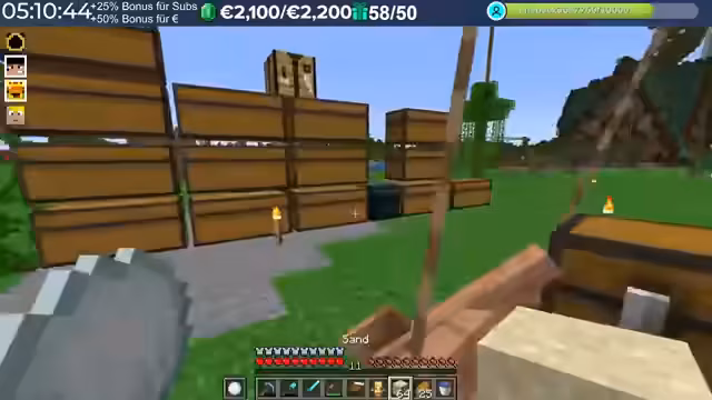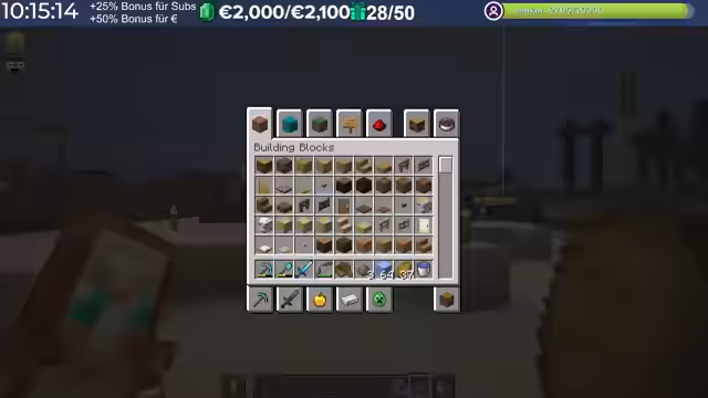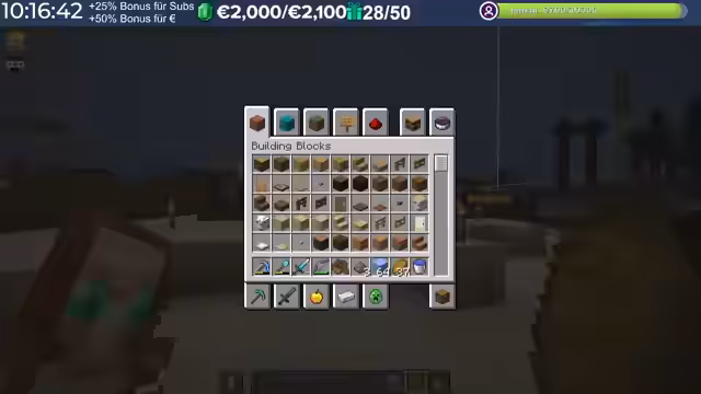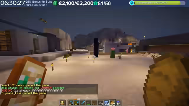 15:10:13Nach der erfolgreichen Rückkehr zum Server interagiert der Streamer intensiv mit den Zuschauern und anderen Spielern. Er identifiziert Fehler und spendet einer Person namens Fuchsel als Zeichen der Wertschätzung einen SAP-Betrag. Es findet auch ein Gespräch über Materialien für Bauprojekte statt, wie zum Beispiel grünen Farbstoff für bestimmte Verblendungen, was seine aktuelle Aufgabe im Spiel ist.