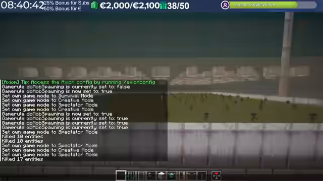 20:45:35In der Soul Sand Valley treten Probleme beim Spawning von Ghasts und Skeletten auf, obwohl die Schwierigkeitsstufe auf Hard steht und Mob Spawning aktiviert ist. Nach Tests mit Beleuchtung und Spielregeln wird festgestellt, dass ein Wechsel der Schwierigkeitsstufe auf Normal und zurück zu Hard das Spawning ermöglicht. Dies wird als Bug interpretiert, und die Farm wird mit Froglight-Blöcken optimiert, um unerwünschte Spawns zu verhindern.