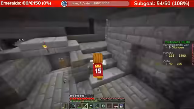 00:29:46Die Streamer beschließen, trotz der Gefahr der Nacht weiter aktiv zu sein, da sie bei Tageslicht noch nicht genug Eisen gesammelt haben. Sie begeben sich in eine nahe Höhle, um Eisen zu farmen, und stoßen dabei auf eine große Anzahl von Monstern wie Creeper und Skeletten. Die Situation wird extrem angespannt, als mehrere Creeper und sogar ein Bogenschütze sie umgeben. Trotz der ständigen Gefahr des Todes gelingt es ihnen, genügend Eisen zu sammeln, um jeweils eine komplette Eisenrüstung, bis auf die Schuhe, herzustellen und somit ihre Überlebenschancen deutlich zu erhöhen.