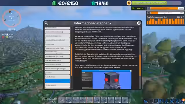 00:30:40Der Streamer erkundet das Konzept modulärer Gebäude, die aus kleineren Elementen bestehen und von Bauindustrie-Gebäuden hergestellt werden. Er baut einen Funkturmsockel, obwohl die genaue Funktion noch unklar ist. Der Bau größerer Strukturen erfordert Bauschiffe und Baudrohnen, was die nächste Stufe der Entwicklung darstellt.