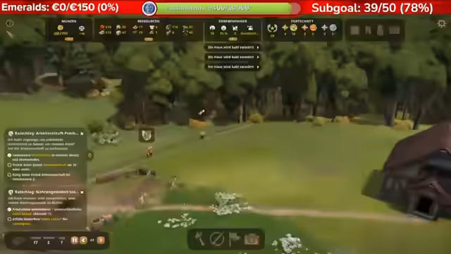 02:55:43Der Streamer schaltet neue Handelsrouten frei, um Kleidung, Werkzeug und Fisch zu verkaufen. Er erreicht Rang 3 beim allgemeinen Pfad durch das Freischalten von Handelsrouten und plant, in neue Produkte zu investieren. Der Streamer wirft einen Blick auf die Handelsungen und stellt Wildschweine zum Verkauf ein. Er erhöht den Restbestand bei verschiedenen Ressourcen, um immer genug übrig zu haben. Der Streamer diversifiziert das Angebot am Marktstand und fügt Lebensmittelstände hinzu, um den Prunk zu erhöhen. Ein neuer Ratschlag wird gegeben, Dorfbewohner zu befördern. Der Streamer befördert einen Bäcker und beobachtet dessen neue Bedürfnisse. Er stellt neue Bauhüttenmitarbeiter ein, um schneller zu bauen. Der Streamer erweitert die Kämmererei und reißt die Tür ab. Er stellt neue Leute im Sägewerk ein, um die Bretterproduktion zu erhöhen. Der Streamer findet das Bausystem unintuitiv. Er baut die Vogtei fertig und ernennt einen Vogt. Der Vogt soll ein Mineralvorkommen erkunden und den Arbeiterstand beeinflussen. Der Streamer diskutiert eine Abgabe, um Geld zu erhalten, und erkundet das nächste Mineralvorkommen. Er lässt den Vogt durch die Gegend eiern und wartet, bis er wieder da ist. Der Streamer macht Deko-Sachen und baut Wohngebäude. Er speichert das Spiel und beendet den Stream.