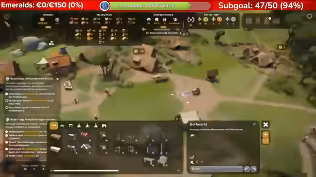 02:45:11Der Streamer kauft neues Territorium, um dem Fischer das Angeln zu ermöglichen, und entdeckt dabei ein Mineralvorkommen in der Nähe. Die Dorfbewohner äußern den Wunsch nach einem Jahrmarkt, was den Streamer dazu veranlasst, den Marktplatz zu verbessern. Er reißt Zelte ab, um Platz für neue zu schaffen, und stellt fest, dass Holz benötigt wird. Um die Punkte für den Dorfmarkt zu erreichen, sollen Lebensmittelstände gebaut werden. Der Streamer plant, den kompletten Wald abzuholzen, um Platz für weitere Weizenfelder zu schaffen, und die Jägerhütte in ein neues Gebiet zu verlegen, damit der Wald voller Wildschweine gejagt werden kann. Es werden Überlegungen angestellt, wo die Jagdhütte und die Mine gebaut werden sollen. Der Streamer kauft weiteres Territorium, um an Mineralien zu gelangen und die Jagd zu ermöglichen. Die Holzfäller werden wieder in ihr ursprüngliches Gebiet geschickt, während die Köhlerei den Wald in der Nähe wegmacht. Der Streamer erwähnt eine Nachricht bezüglich des Jahrmarkts und die Möglichkeit, Unterbauten auszuwählen. Es wird auch über Edikte, Getreidebedarf und Mineralvorkommen gesprochen.
