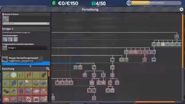 01:02:07Nachdem die Grundmaterialien verfügbar sind, richtet sich der Fokus auf die Forschung. Neue Forschungspakete werden aktiviert, um fortgeschrittene Technologien zu erschließen. Die Priorität liegt auf der Produktion von Stufe-2-Maschinenteilen, die für weitere Entwicklungen essenziell sind. Parallel werden auch nicht-kritische Technologien wie die Lichtbot-Herstellung eingeleitet, die hauptsächlich für den Verkauf von Handelswaren genutzt werden können.