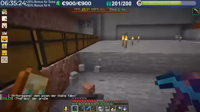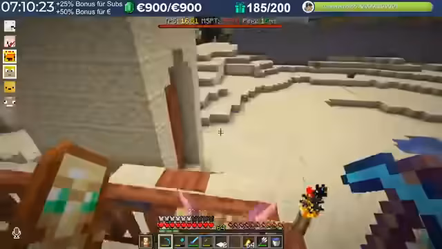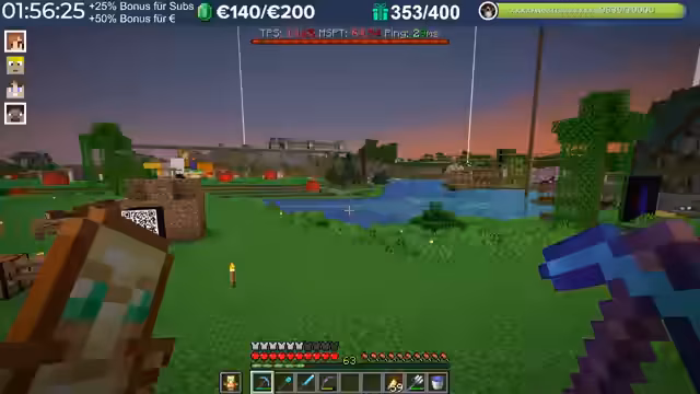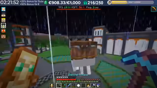 21:55:35Während der Wartezeit auf die Materialien wird das Thema PvP auf dem Server angesprochen. Es kommt zu einer humorvollen und hitzigen Diskussion darüber, wer der stärkste PvP-Spieler im Team ist, wobei sich die Teilnehmer gegenseitig provozieren und ihre Fähigkeiten unter Beweis stellen wollen. Gleichzeitig wird die kritische Server-Performance thematisiert, da eine Überpopulation an Tieren, insbesondere über 3000 Kühe, erhebliche Lag-Probleme verursacht. Es wird dringend eine Lösung gefordert, um die Server-Stabilität wiederherzustellen.