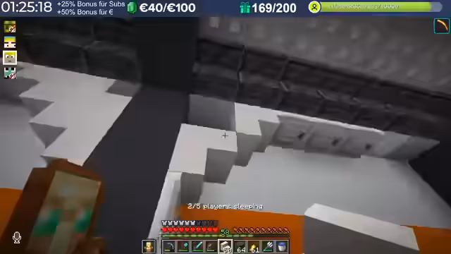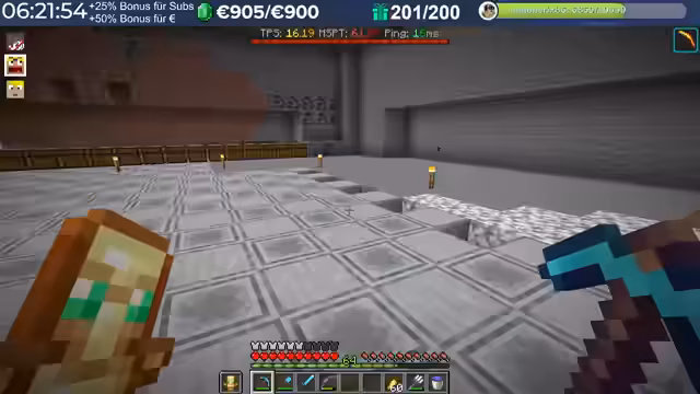 00:09:42Der Stream beginnt mit dem normalen Tagesablauf bei Craft Attack. Nach einer ruhigen Nacht und nur geringfügigen Fortschritten, plant der Streamer den weiteren Verlauf des Tages. Es werden die Restspielzeit und die Performance des Servers angesprochen, welche durch die wieder aktivierte KI-Mobs belastet wird. Parallel dazu wird an der Basis weitergebaut, wobei ein neuer Eingang und Lagerflächen geplant werden, um Platz für zukünftige Projekte und Ressourcen zu schaffen.