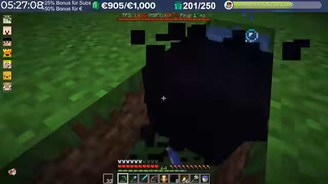 03:39:53Ein kritischer Server-Performance-Absturz führt zu massiven Problemen. Die TPS (Ticks Per Second) sinken auf einen kritischen Wert von 13, was bedeutet, dass alle Spielvorgänge 25% langsamer ablaufen. Farmen wachsen langsamer, Tag-Nacht-Zyklen verlängern sich und das allgemeine Spielerleiden leidet. Als Ursache wird eine zu hohe Anzahl an Entitäten (Tiere, Villager) identifiziert, die durch unbedachten Baukasten über Wochen entstanden sind und nun die Serverleistung lahmlegen. Das Problem erfordert dringende technische Intervention.
