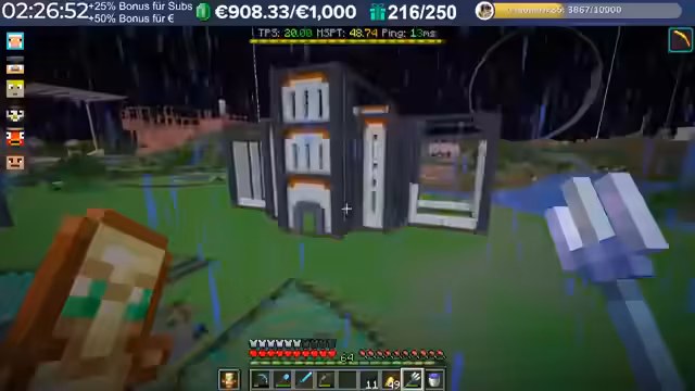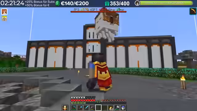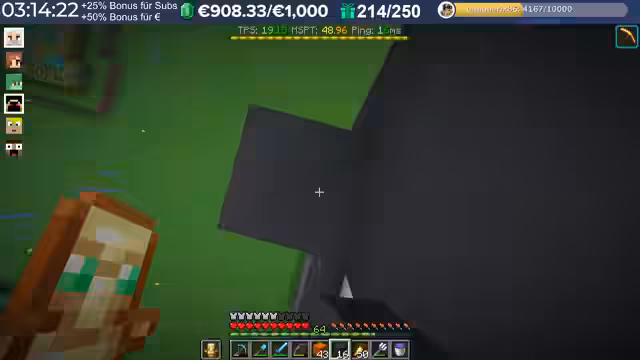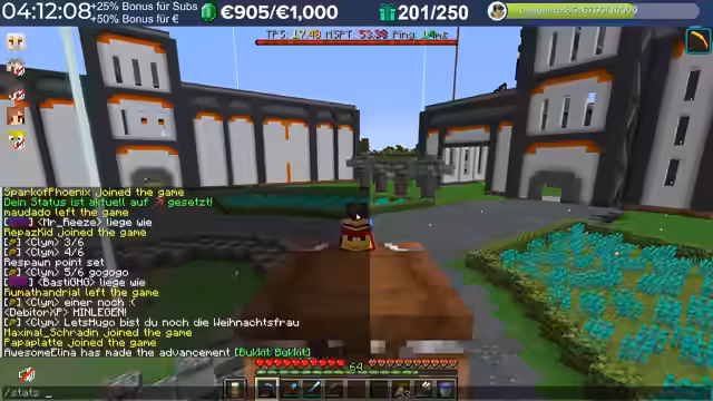 01:03:40Während der Bauphase und der Boss-Kampagne werden massive Performance-Probleme auf dem Server deutlich. Die reaktivierte KI der Mobs und das allgemeine Bauen der Teilnehmer führen zu einem drastischen Abfall der TPS auf unter 14. Dies bremst den Fortschritt und beeinträchtigt das Spielerlebnis. Dennoch bleibt der Streamer optimistisch und will die guten Bedingungen, die durch die Spenden entstanden sind, für den weiteren Ausbau der Basis nutzen.