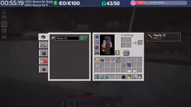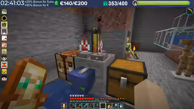 00:50:23Der Fokus wechselt zu den Ressourcen: der Streamer überprüft den Kupferbestand für den Bau der Kupferkratzer-Farm und stellt fest, dass die Menge ausreicht, um die benötigten 26.000 Einheiten zu produzieren. Gleichzeitig läuft eine intensive Spendenaktion für den Boss-Kampf. Die Auswirkungen von Sub-Gifts und Emerald-Spenden auf die Boss-Leiste werden genau erklärt, wobei Emeralds als effizienter gelten. Der Hype-Train treibt die Timerzeit kontinuierlich nach oben und sorgt für hohe Aktivität im Chat.