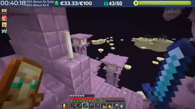 17:19:32Die Szene wechselt zum Gameplay im Minecraft-Nether, wo der Streamer aktiv Ressourcen farmt, insbesondere Schalker-Kugeln, und seine Effizienz durch geschickte Manöver beweist. Gleichzeitig gibt er einen Einblick in seine Bauprojekte wie einen Todesstern und eine Raketenbasis. Es gibt eine Diskussion über den Fortschritt der anderen Teilnehmer und die Herausforderungen, die mit dem Einsammeln von Materialien und dem Bau von großen Projekten verbunden sind.