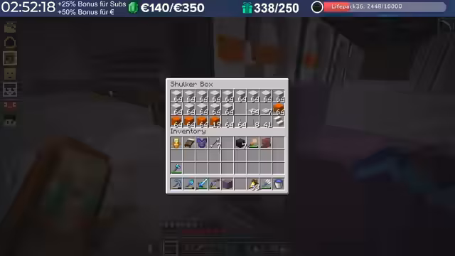 18:18:00Nachdem der Inventarverlust aufgrund eines technischen Fehls beim End-Dragon-Kampf überstanden ist, beginnt der Streamer mit einer grundlegenden Neustrukturierung. Er sortiert alle wichtigen Ressourcen in farbigen Schalkerboxen. Dazu gehören Kategorien für Basisbaustoffe, Werkzeuge, Notfallausrüstung, Deko, Blöcke, Nahrungsmittel, Rüstung und vor allem auch Elitren, die für zukünftige Pläne essenziell sind. Das Ziel ist ein vollständig geordnetes und effizient nutzbares Inventar.