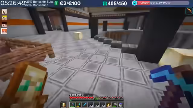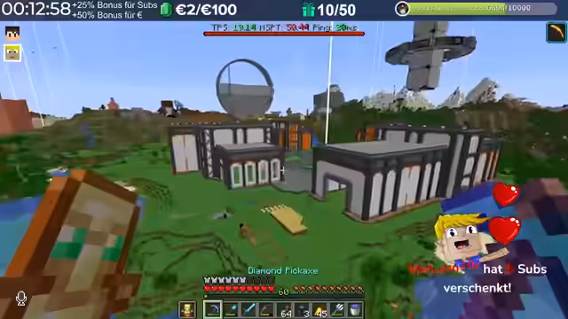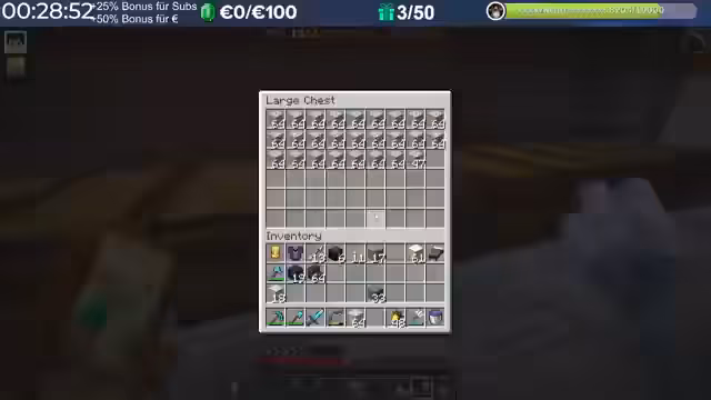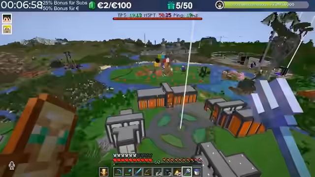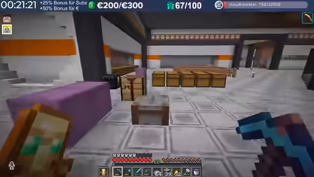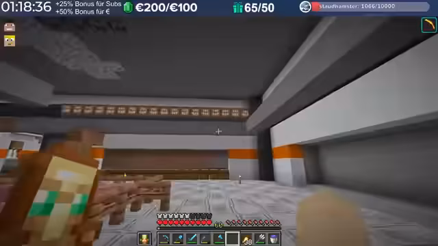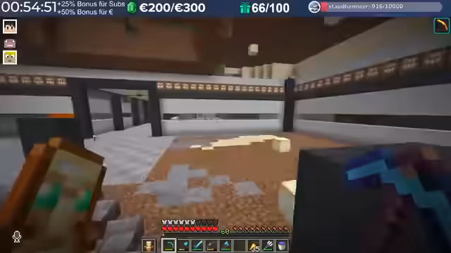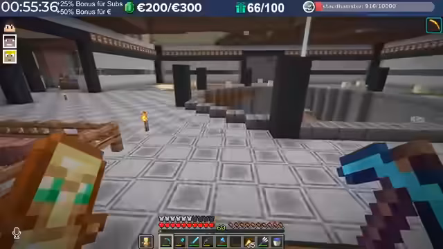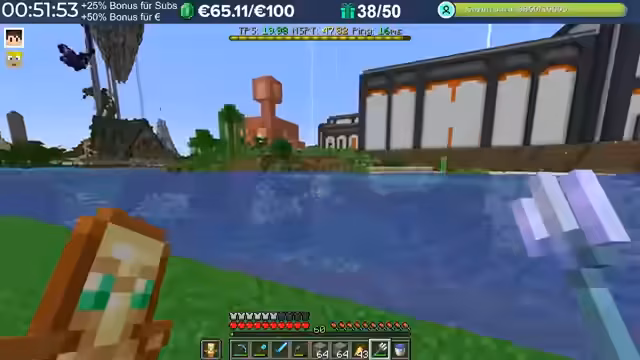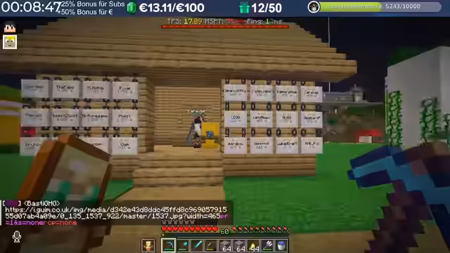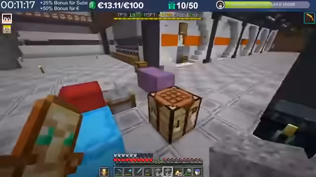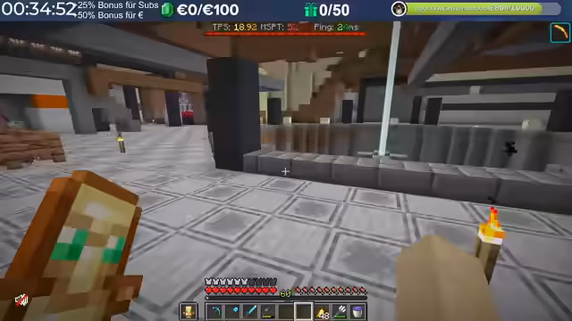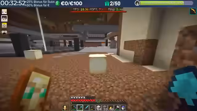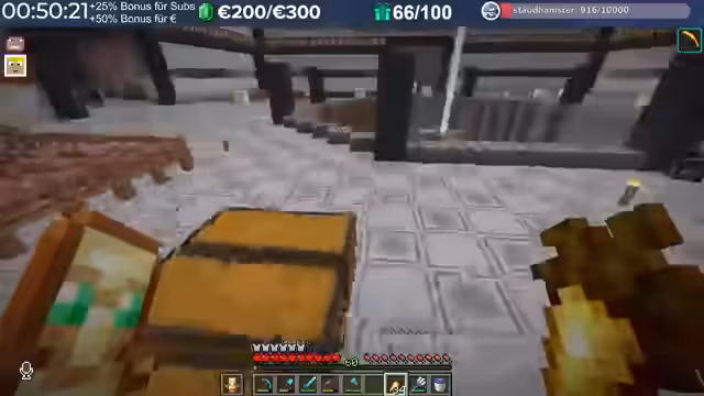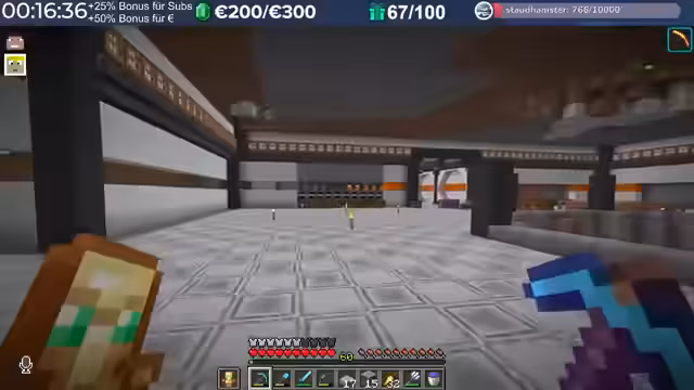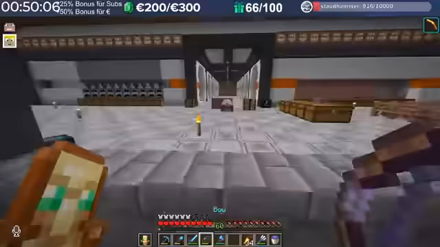 16:50:34Die Streamer besuchen den Shopping District, um die neu implementierte Diamantenbank zu besichtigen. Diese Bank ermöglicht es Spielern, Diamanten einzuzahlen und abzuheben, um ein Ranking zu erstellen und den Diamanten mehr Wert im Handel zu verleihen. Die Umsetzung der Bank, insbesondere die Verwendung von Schildern mit Namen und wechselnden Anzeigen, wird diskutiert. Der Streamer schlägt alternative, "cleanere" Implementierungen vor, wie ein Below-Name-Scoreboard oder ein Menü, das über eine Taste wie 'G' aufgerufen wird und den Kontostand sowie Highscores anzeigt, ohne das Vanilla-Gameplay visuell zu stören. Es wird betont, dass es kein "richtig" oder "falsch" bei der Umsetzung gibt und die aktuelle Lösung von Olli als Kompromissidee entstanden ist, um den Handel mit Diamanten zu fördern und ein Anreizsystem zu schaffen, da viele Spieler mit Subs statt In-Game-Währung handeln.