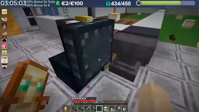 02:05:31Während des Streams konzentrieren sich die Teilnehmer auf Bauarbeiten, wobei Kevin das Hauptlager und die Notwendigkeit von Clay für eine Wandreparatur anspricht. Es wird diskutiert, ob genügend Clay vorhanden ist, und es stellt sich heraus, dass ein Stack Blöcke im lila Schalker Mittellager liegt, aber möglicherweise nicht ausreicht. Die Planung für die Beleuchtung und die Anpassung eines Gradienten an einer Wand, die zuvor eingerissen wurde, werden besprochen. Es wird humorvoll angemerkt, dass der Vorarbeiter nicht sauber gearbeitet hat, was zu Nachbesserungen führt. Die Bereitstellung von Betten für alle, damit sie schlafen können, während andere durcharbeiten, wird organisiert. Zudem wird über die Beschaffung von Quarz und Pale Oak Holz gesprochen, wobei Fuchsel als Lieferant genannt wird. Die Notwendigkeit, Diorite zu beschaffen, wird ebenfalls erwähnt, und es wird festgestellt, dass in der Middle Base Calcit verfügbar ist.