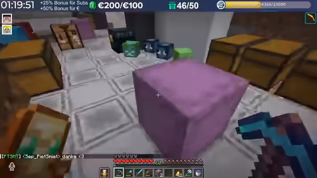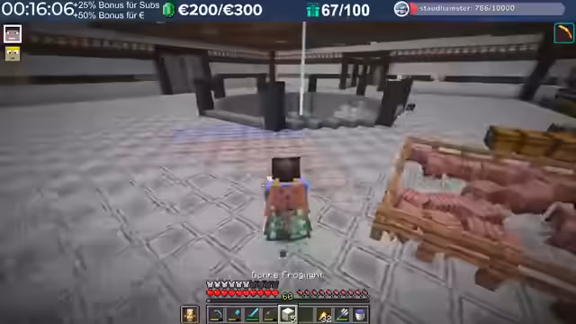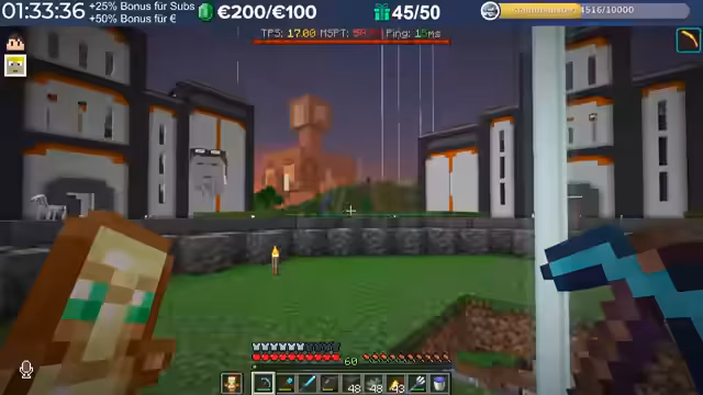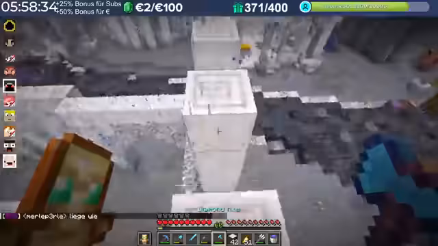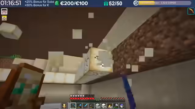 20:10:46Der Streamer plant, erster Platz bei den Diamanten zu werden, indem er konstant farmt, da alle anderen dies auch tun und der Handel mit Diamanten schwierig ist. Er erinnert sich an Craft Attack 8, wo er 11.000 Diamanten besaß und eine ganze Shulkerbox voll mit Erzen hatte. Damals wurde ein Subathon veranstaltet, bei dem pro Sub ein Diamant-Erz gefarmt wurde, was zu einer enormen Menge an Erzen führte. Er hatte zwei Shulkerboxen voll mit Erzen, was mindestens 7000 Diamanten entsprach, oder sogar 11.000, wenn man die Fortune-Abbau-Rate berücksichtigt. Er beschreibt seine Farmstrategie, bei der er Beacons unterirdisch platzierte, um Insta-Mining zu ermöglichen, und ganze Bereiche ausgrub. Diese Methode war sehr zeitaufwendig, aber effektiv. Der Subathon wurde später auf Streamzeit umgestellt, da das reine Diamantenfarmen zu isolierend war. Er erinnert sich an die körperliche Anstrengung und die visuellen Nachwirkungen des stundenlangen Abbaus. In Craft Attack 8 war er der erste, der eine Pyramide sprengte, um eine riesige Creeper-Farm zu bauen, die pro Stunde 70.000 Gunpowder produzierte. Er betonte, dass Mob-Farmen tiefer in der Welt effektiver sind, da dort die Mob-Spawn-Rate höher ist.
