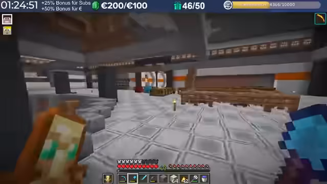 21:10:57Es wird über ein Bankgebäude und ein Diamanten-Ranking-System auf dem Server gesprochen. Spieler können ihre Diamanten in einer Bank einzahlen, um Highscore-Positionen zu erreichen, was zur Abonnements handeln und Diamanten sammeln motiviert. Das System wurde entwickelt, da Spieler primär mit Subs und nicht mit Ingame-Währung handeln. Es gibt Diskussionen über verschiedene Implementierungsmethoden - von einem physischen Bankgebäude bis zu unter den Spielern angezeigten Zählern. Während eine komplett Vanilla-Alternative favorisiert wird, entschuldigt sich das aktuelle System als Kompromiss, das trotz Eingriffen in das Spiel vanilla-freundlich bleibt.