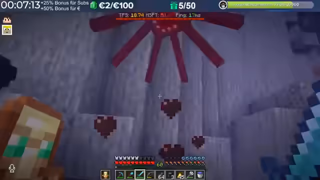 16:26:12Es wird über die Creaking Hearts gesprochen, die der Streamer gebaut und unter sich versteckt hat. Es sind 500 Stück, die gecraftet wurden und die TPS (Ticks Per Second) des Servers schlagartig um 5 Punkte fallen ließen. Der Streamer erklärt, dass die Creakings auf Item-Geräusche reagieren und nicht nur auf das Horn, weshalb man in ihrer Nähe nichts essen sollte. Er hat jedoch einen Notschalter eingebaut, um sie zu deaktivieren und die TPS wieder zu stabilisieren. Die Creakings verursachen nicht viel Schaden, sind aber eher für den Effekt gedacht. Die TPS-Werte des Servers werden beobachtet, während die Creakings aktiv und deaktiviert sind, und es wird festgestellt, dass die Deaktivierung eine Weile dauert, bis sich die TPS wieder erholen. Die Streamer diskutieren, dass absichtliche Lags vermieden werden sollten, obwohl der Streamer versichert, dass er die Creakings nicht ständig aktiviert lässt.