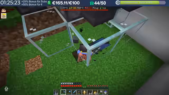 17:43:23Es wird über die Möglichkeit eines Doppelsprungs nachgedacht, wobei diskutiert wird, wie dies durch Tricksereien im Spiel umgesetzt werden könnte, etwa durch das Reiten auf einem unsichtbaren Schwein. Parallel dazu wird weiterhin an einer Redstone-Schaltung gearbeitet, die sich als kompliziert erweist. Ein Hopper soll durch eine Redstone-Fackel gesperrt werden, aber die Schaltung funktioniert nicht konsistent, was auf Block-Update-Probleme oder Server-Optimierungen zurückgeführt wird. Die Frustration über das unvorhersehbare Verhalten von Redstone-Komponenten wird deutlich, aber es wird betont, dass man Wege finden muss, um damit umzugehen.