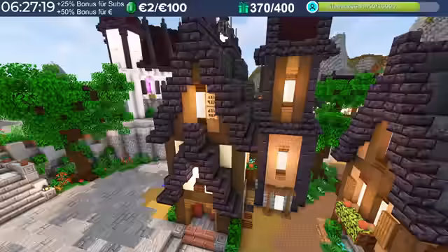 01:39:05Nach den turbulenten Ereignissen der Hochzeitszeremonie widmet sich der Streamer dem Bau einer Minecraft-Stadt. Dabei werden verschiedene Aufgaben für die Teilnehmer verteilt, dar das Bauen von Häusern, Beschaffung von Materialien und das Gestalten der Fassaden. Es werden verschiedene Baustile diskutiert und auf einer Webseite Referenzbilder für den Bau gezeigt. Der Fokus liegt darauf, eine einheitliche mittelalterliche Stadtarchitektur mit weißen Hauptmaterialien wie Diorit und Quarz zu schaffen, bei der Kontraste vermieden werden.